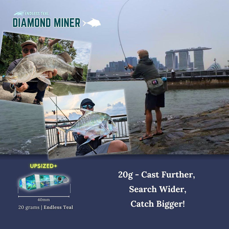 Designed for hunting the elusive Diamond Trevally, from the highly pressured shores of Singapore. Made of 95% Tungsten composite, which allows an ultra-compact profile. Its rear-weighted design allows for excellent casting & sinking, even in strong wind & current. Its unique contours produces a life-like flutter on the lift & fall, enticing even the most finicky predators.